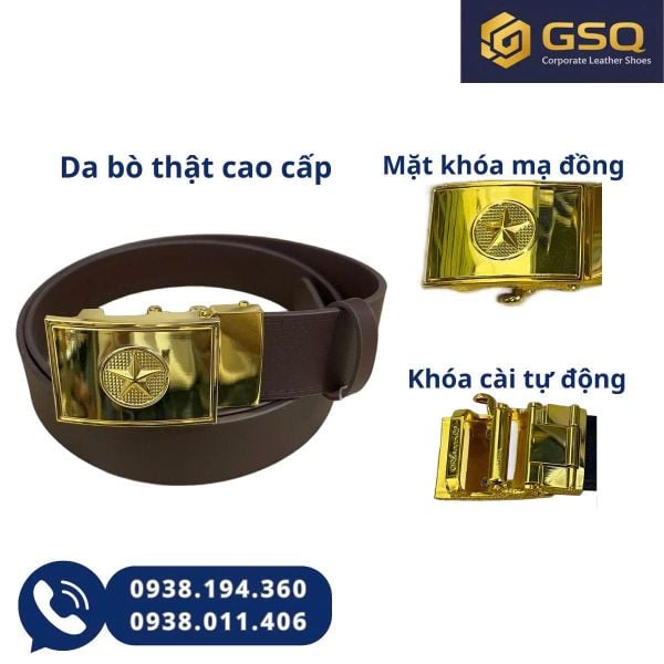 Phần khóa cài tự động là “điểm cộng” cực lớn: chỉ cần trượt nhẹ là vừa vặn, tháo mở nhanh, không mất thời gian canh lỗ. Mặt khóa hợp kim mạ đồng sáng bóng giúp set đồ thêm phần sang trọng.