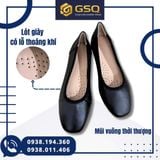 Mẫu giày búp bê đồng phục nữ sở hữu kiểu dáng mũi vuông hiện đại, giúp form chân gọn gàng, không gây đau hay bó ngón chân. Màu đen basic sang trọng, dễ dàng kết hợp với quần tây, váy công sở, đồng phục nhà hàng – khách sạn hoặc đồng phục học sinh – sinh viên.
