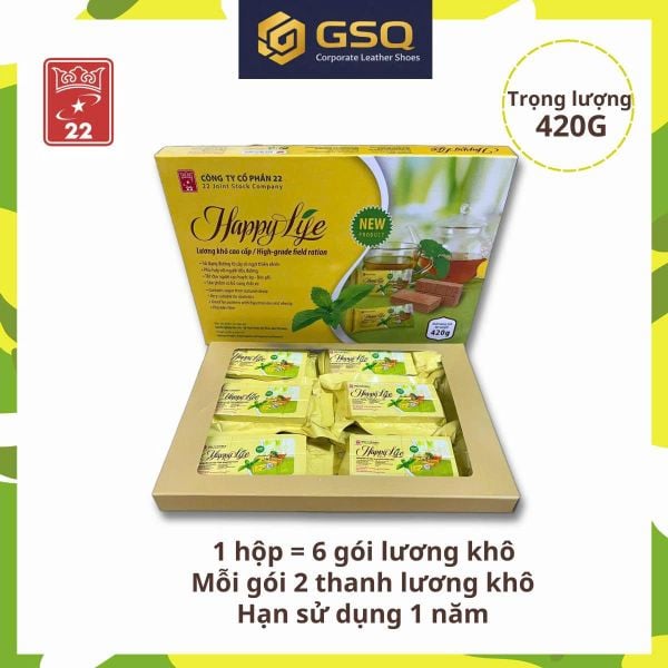 – 1 hộp Lương Khô Happy Life = 6 phong lương khô = 420g